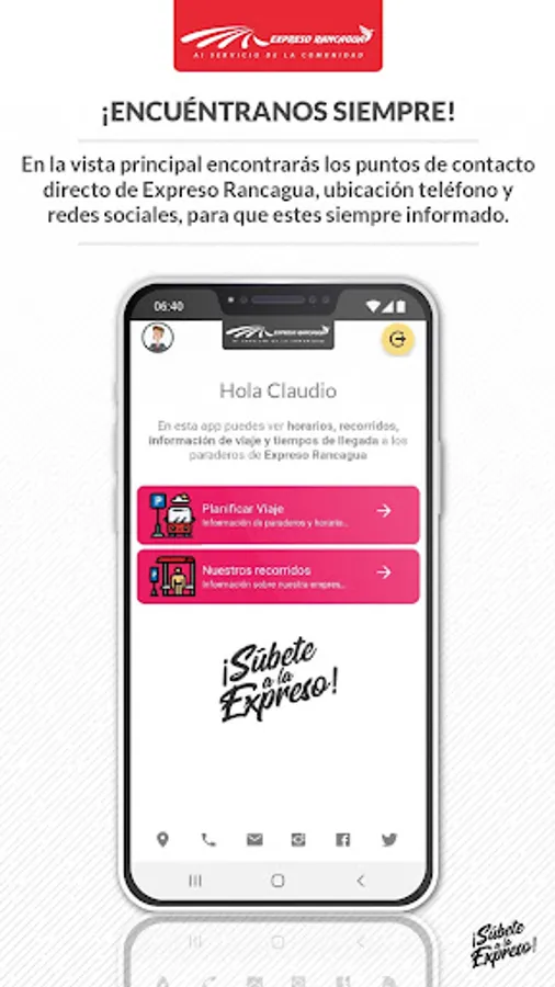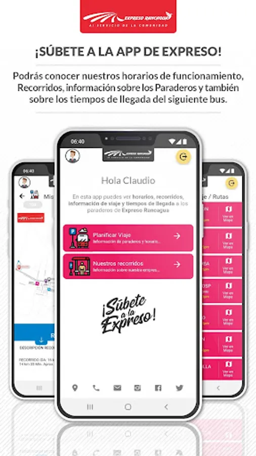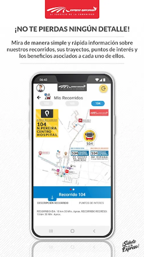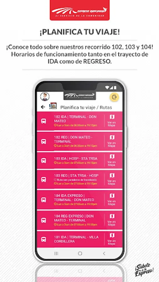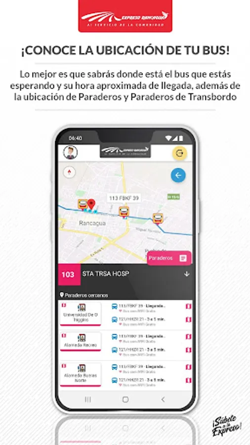 Get on the Expreso App! You will be able to know our operating hours, the routes, information about the whereabouts and also about the arrival times of the next bus. Is there anything better? You will receive notifications on your phone.