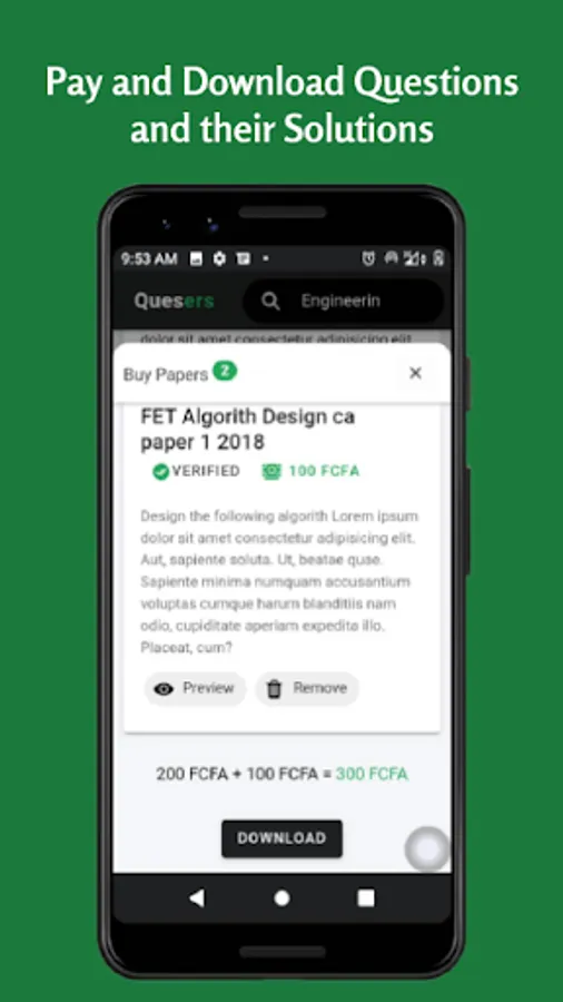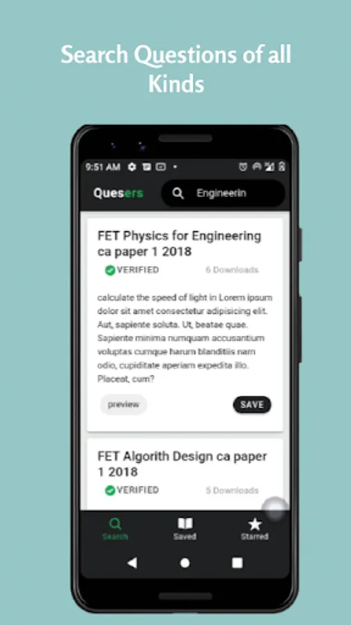 Quesers provides past questions and solutions for students and an in app reader that enables them to read the content they have downloaded.