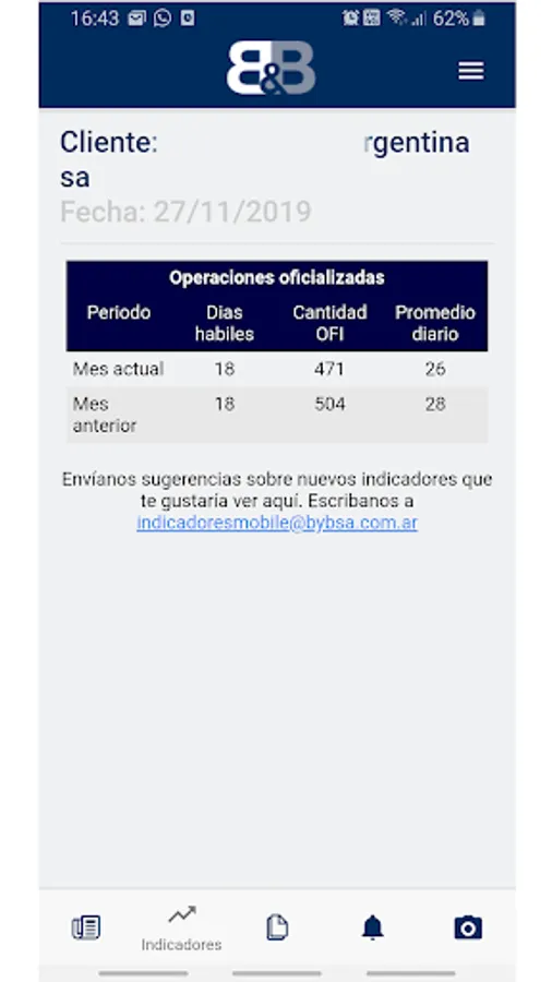 Tracking of On-Line Operations of B&B Consultora S.A.