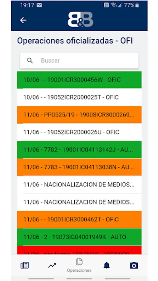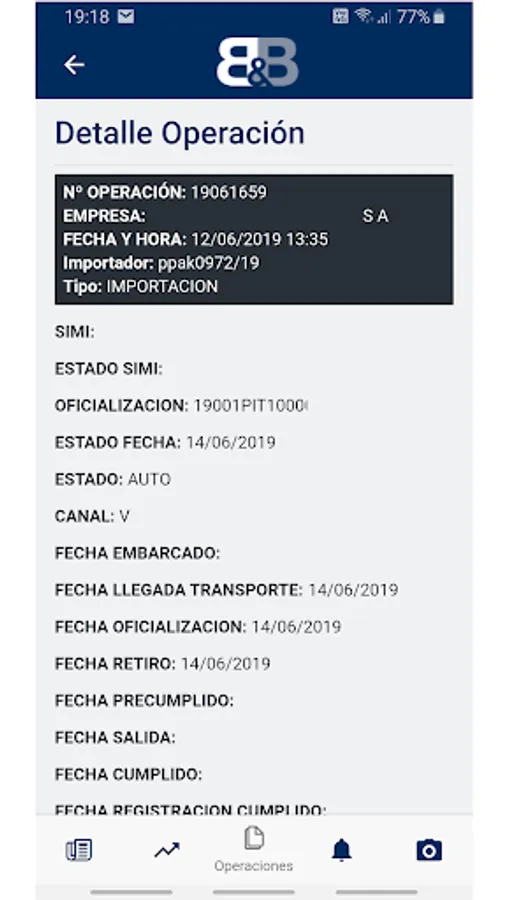 Find your operations, view the detail and download the full customs formalization and Simi.