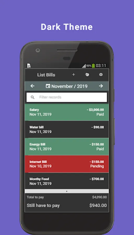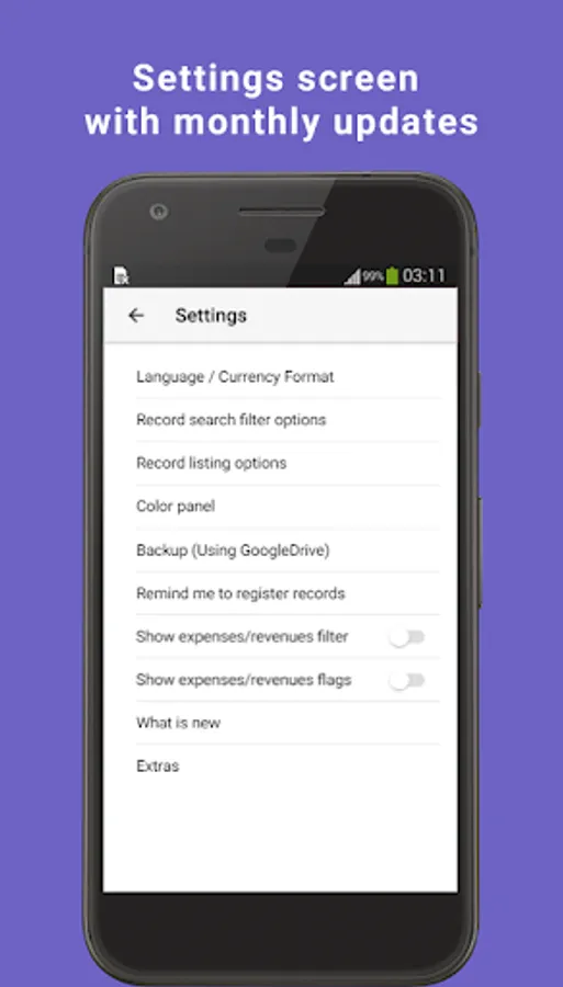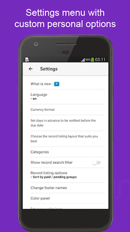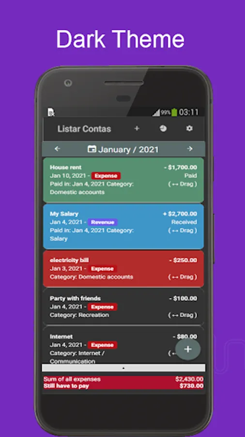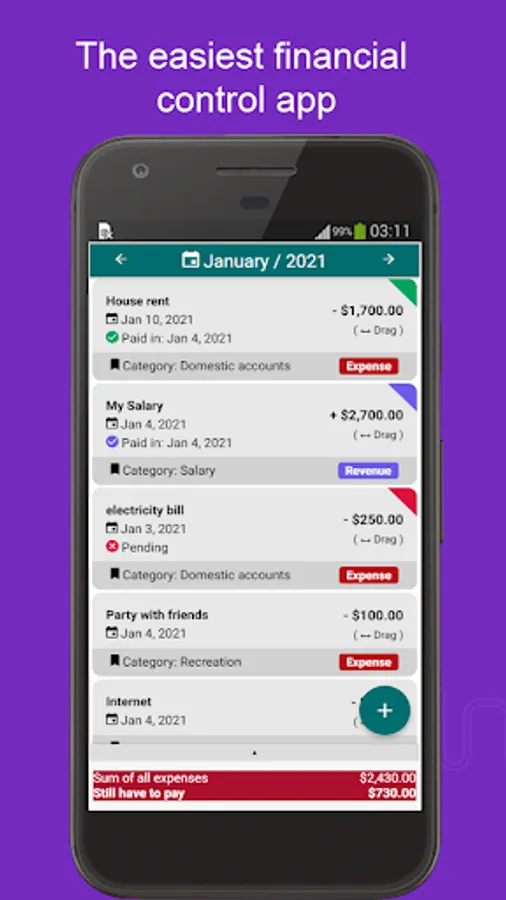 Use ready templates (such expenses as grocery, hobby, utility bills, etc.) or create your own categories, choose any colors and entitle them to adjust the app as you see fit and get the most out of it;