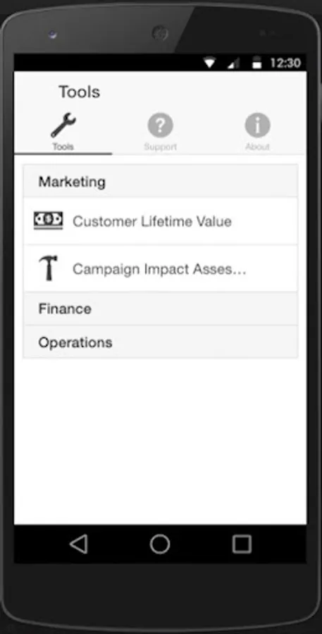 Currently, the toolbox includes four assisting tools: Customer Lifetime Value, Campaign Impact Assessment, Break Even, and Economic Order Quantity calculation.