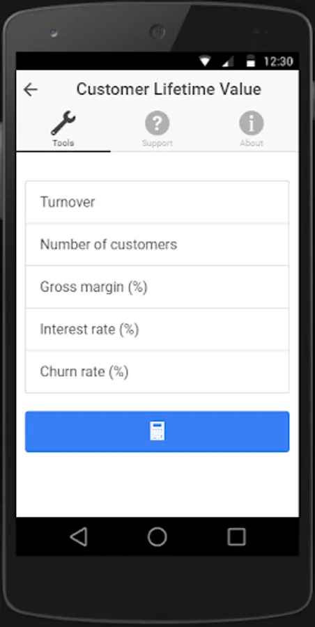 This calculator will allow you to estimate the CLV the simpler way; when the sales cycle is not too complicated you can approximate the calculation by using the 'turnover', 'number of customers', and 'churn rate' (% of customers that stop buying from you every month). When you need a more accurate value, you can do so by inputting the profit margin, and the interest rate.