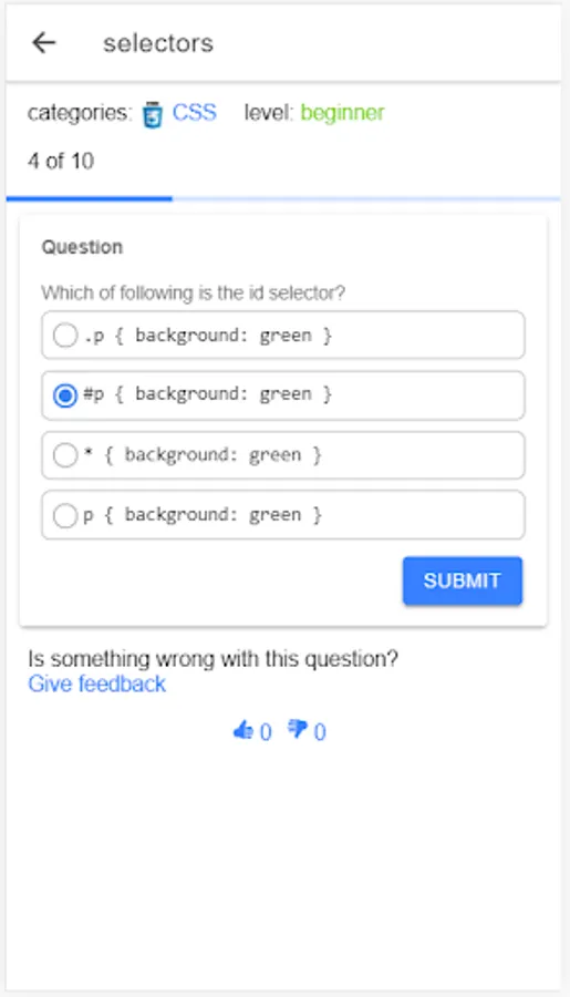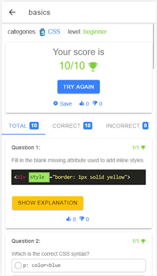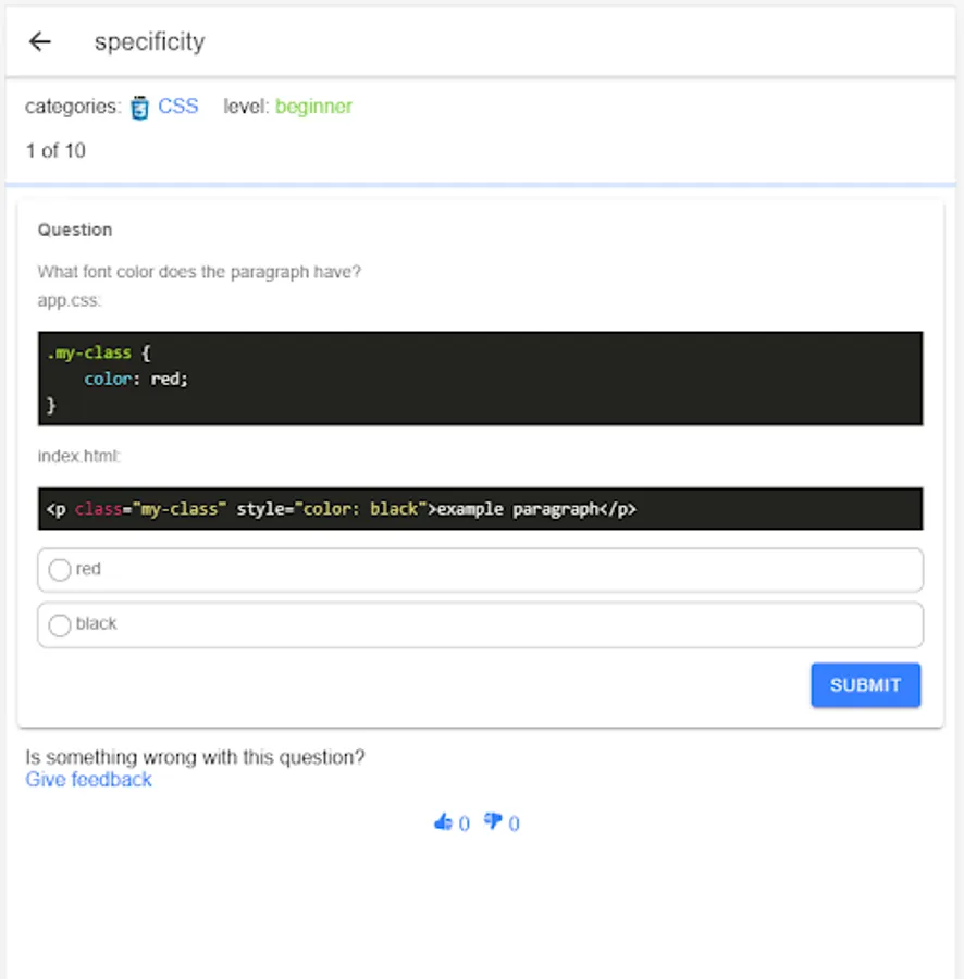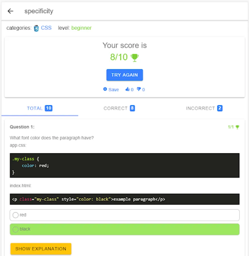 - Learn and improve your CSS skills and knowledge by reading explanations assigned to each question to help you understand the concept