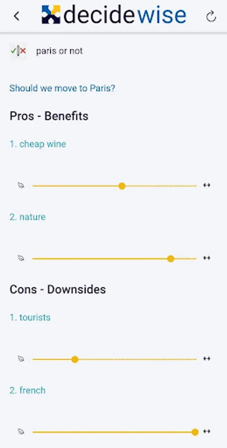 Structured decisions made easy: With Decidewise you can have access to a wide range of decision frameworks such as Pros and Cons, SWAT matrices, among others. You can use those frameworks by yourself or within you group or team to ensure you are having the best decisions and transparency for everyone.