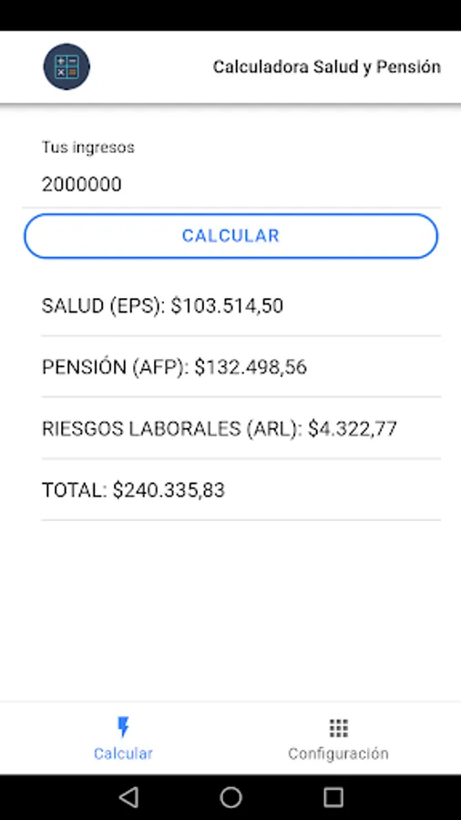 If you are an independent worker who earns a salary and wants to know the percentages you must pay for health, pension and occupational hazards, this application will help you with that task.