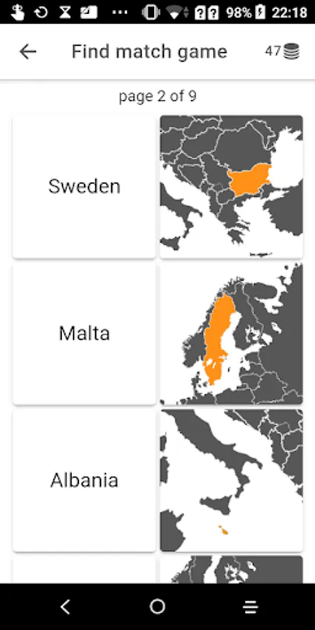 The quizzes includes microstates (e.g. Andorra, San Marino, Monaco, Liechtenstein, Vatican City) and transcontinental countries situated both in Europe and Asia (Turkey, Russia, Azerbaijan, Kazachstan and Georgia).