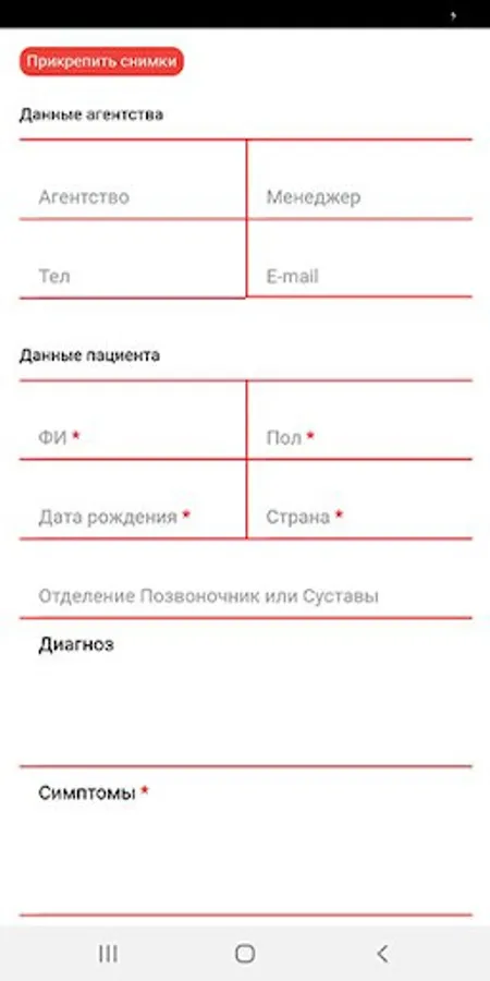 Приложение больницы Саранг Плас для агентств, для отправки заявок и снимко