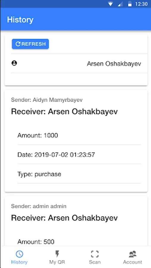 Application for making internal transactions among students and organizations in International Information Technology University.