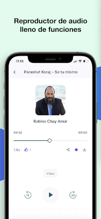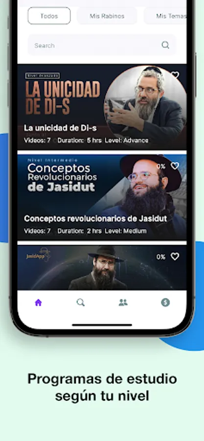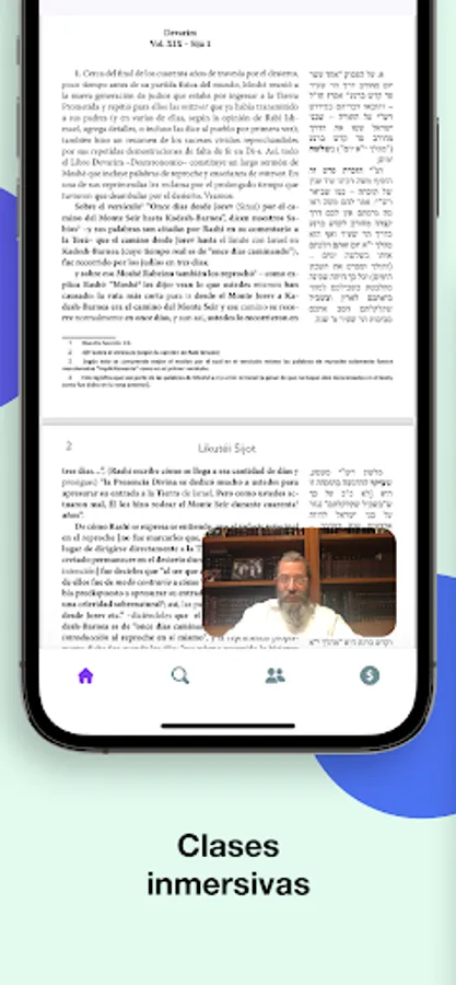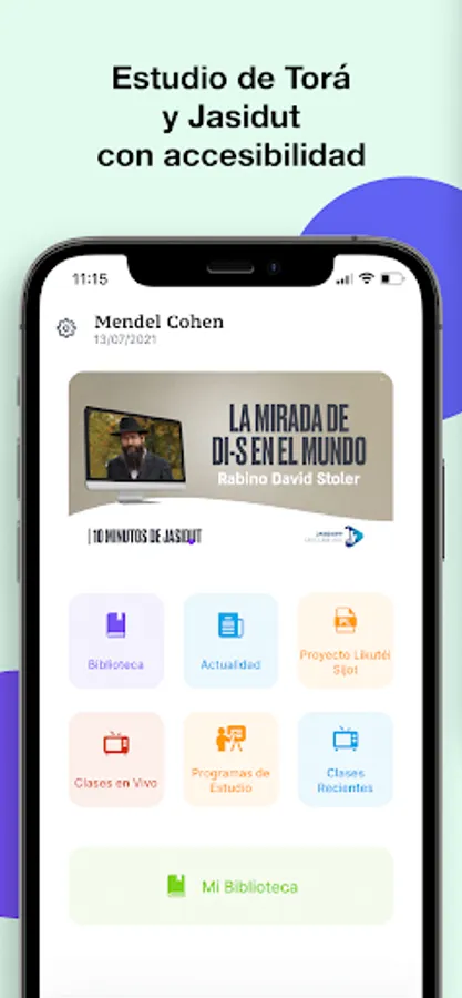 El usuario puede tomar Clases en vivo de sus Rabinos de preferencia. También, luego se puede ver las clases en caso de no haber podido participar.
