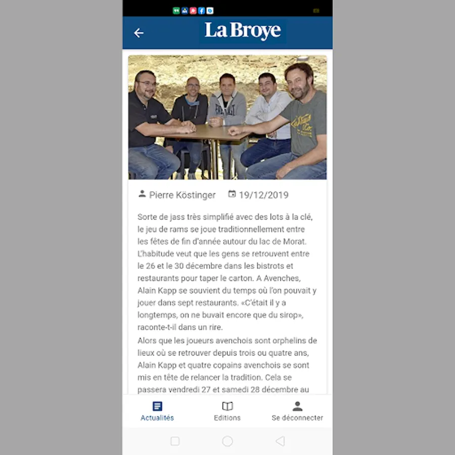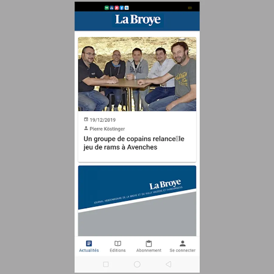 Application containing the entire weekly La Broye. This edition is enriched with multimedia content. Navigation and reading are comfortable.