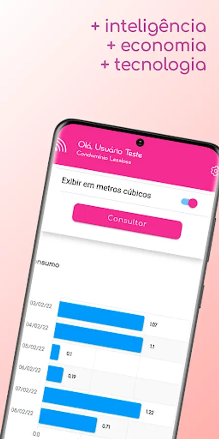 In the app you'll be able to monitor your daily water and gas consumption, access your consumption history, as well as analyze consumption graphs by day, month or year.