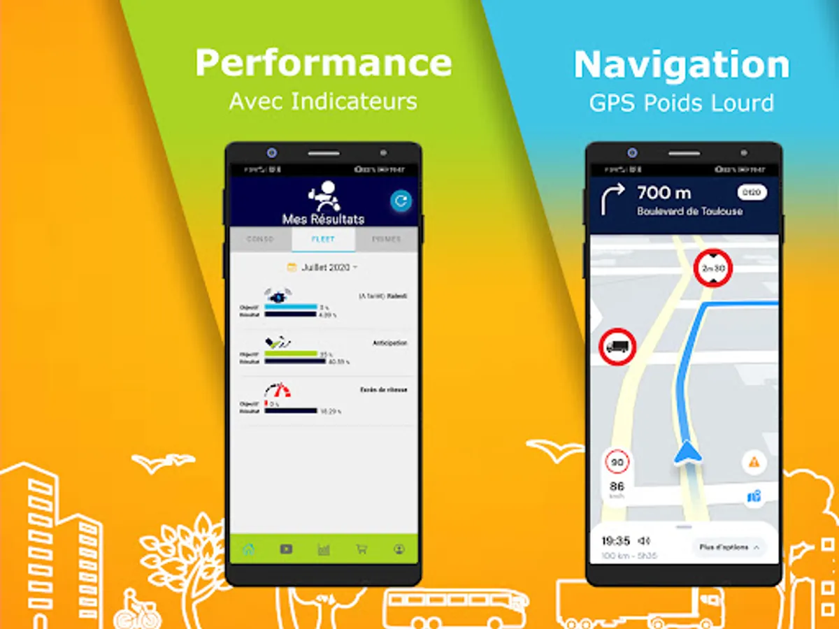 In addition to the Eco-Driver application and depending on the options selected by his employer, the driver can benefit from the Eco-Navigation application also available on blinds (GPS HGV navigation).