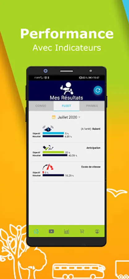 It reduces fuel consumption by 5 to 10% through specific support for the driver in driving his vehicle, improves performance axes on claims, breakage, disputes, attendance and many others. others, while promoting the teams' approach through a reward catalog supplied by the drivers themselves.