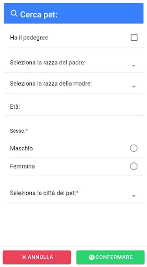 Tantissime razze tra cani e gatti e se non trovi la razza giusta, scrivici e l'aggiungeremo.