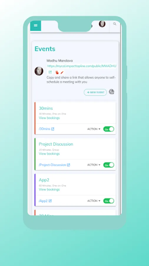 • SHARE YOUR LINKS: Quickly copy your MyCal links and paste them into an email, text, or any other app, saving you time while you’re away from your computer.