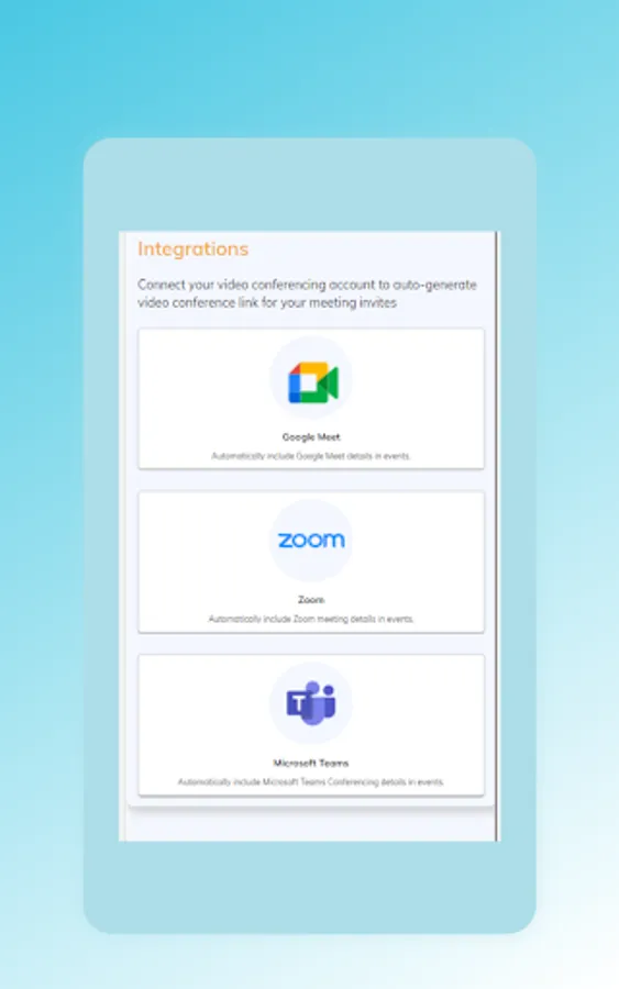 • TIME ZONE INTELLIGENT: Seamless time zone detection for your invitees so everyone’s on the same page.