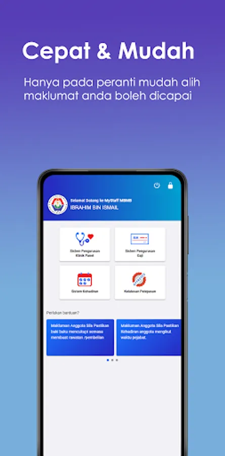 The MBMB MyStaff application allows the staff of the Historic Melaka City Council (MBMB) to manage clinic information, application and discharge confirmation, salary management & check attendance only through the mobile device application