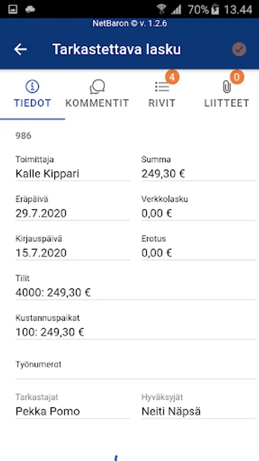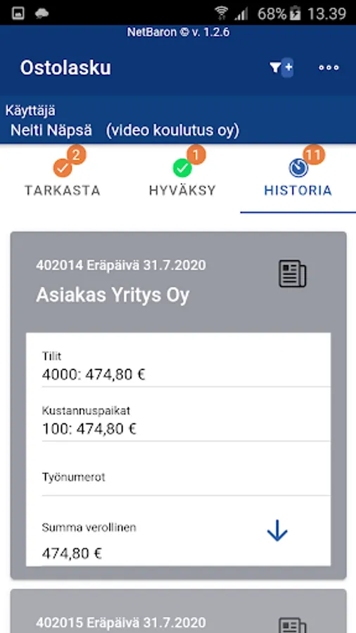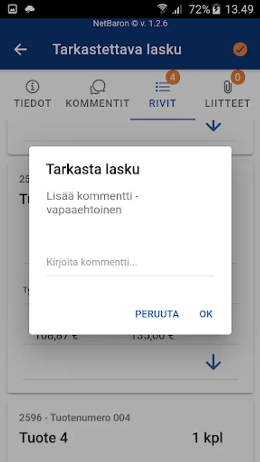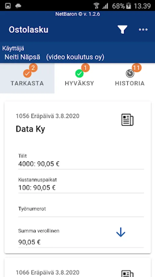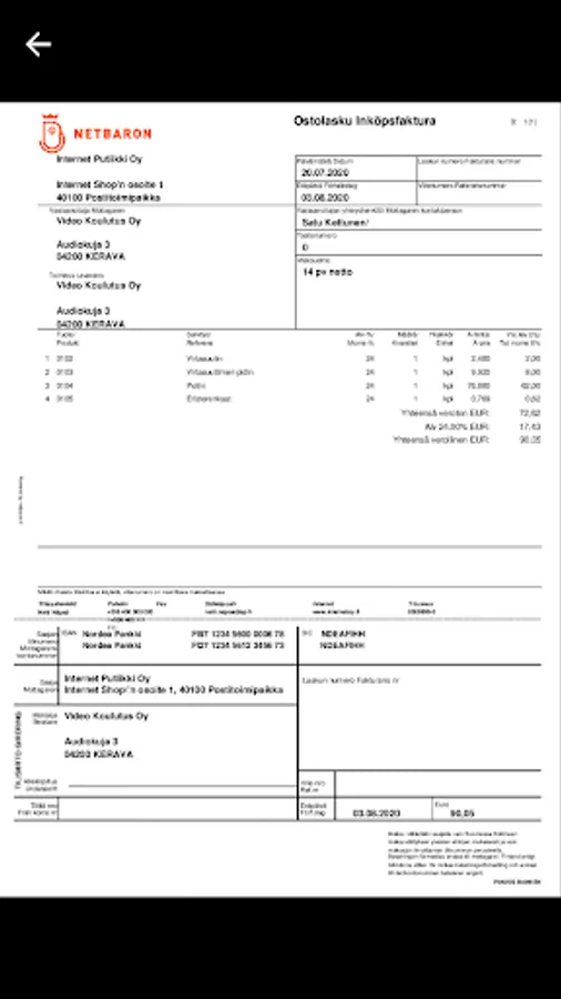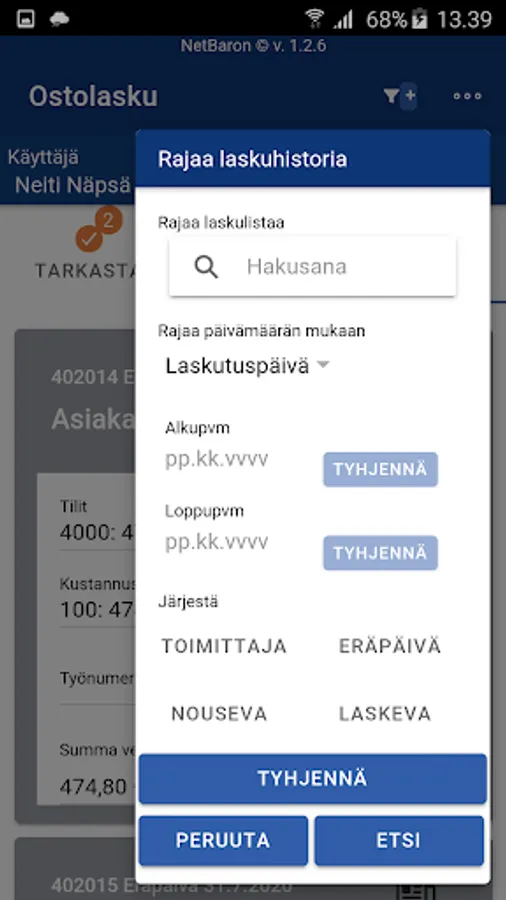 Käytä NetBaron, Ostolasku-MobiApp -sovellusta Android-puhelimellasi.