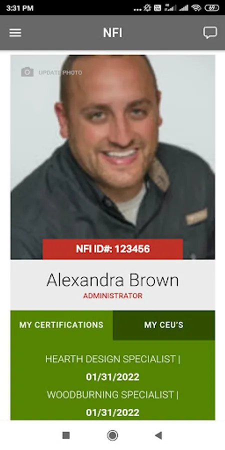 - Access your Certification number, expiration dates and current CEU totals in a convenient photo Identification screen