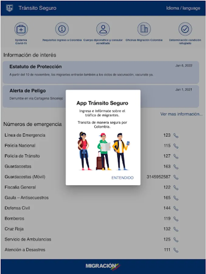 This application is managed by Migración Colombia and was designed within the framework of the National Strategy to Fight Migrant Trafficking (Decree 1692 / 2016) to promote regulated, orderly and safe migration in accordance with UN international standards.