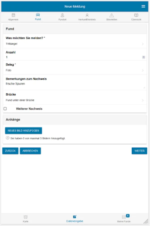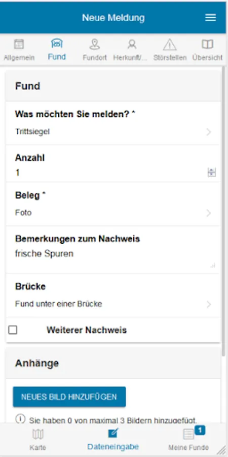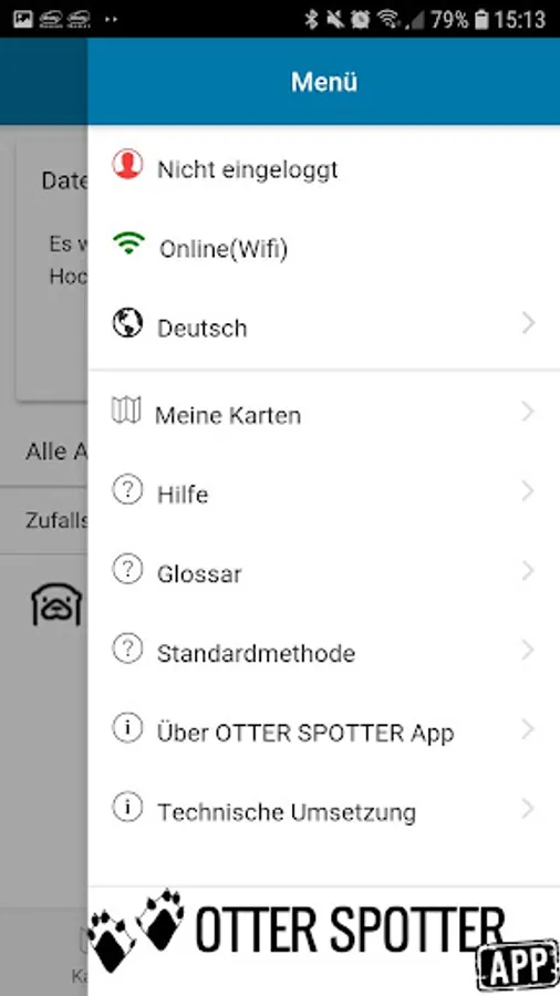 Participation in the OTTER SPOTTER basic course is required to carry out the systematic mapping (further information at www.otterspotter.de). Chance finds can be entered without prior training, but appropriate proof must be provided. Dead finds in particular play an important role for the association in order to be able to identify possible danger spots for otters and, if possible, to remedy them. Finds can also be recorded offline with the app. Maps can be downloaded beforehand for this purpose.