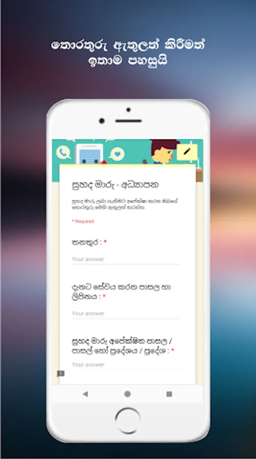 මෙම යෙදුම පිළිබඳ විමසීමක් වෙතොත් 0771476917 දුරකථන අංකයෙන් විමසන්න.