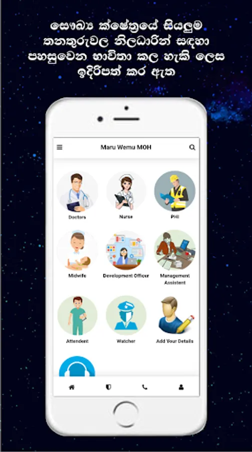 සෞඛ්ය ක්ෂේත්රයේ සේවයේ නියතු සියලුම තනතුරු වල නිලධාරීන් සඳහා මෙම යෙදුම භාවිතා කළ හැකිය. For All Health Staff