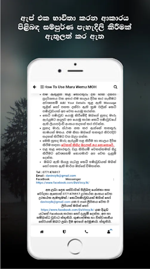 එම ගැටළුවට පිළියමක් වශයෙන් අප මෙම යෙදුම (Maru Wemu MOH) හදුන්වා දී ඇත. සෞඛ්ය (Health) ක්ෂේත්රයේ ඉහලම තනතුරේ සිට පහලම තනතුර දක්වා සියලුම නිලධාරීන්ගේ තොරතුරු මෙහි ඇතුළත් කළ හැකි ලෙස මෙම යෙදුම නිර්මාණය කර ඇත. ඉතා පහසුවෙන් භාවිතා කර හැකි ලෙස මෙම යෙදුමේ අතුරුමුහුනත සකස් කොට ඇත.