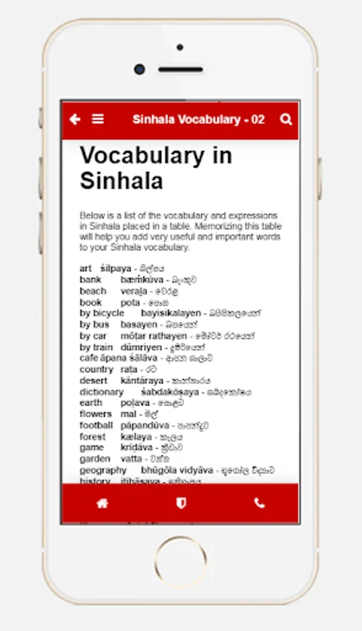 Lessons come with Sinhala definition.