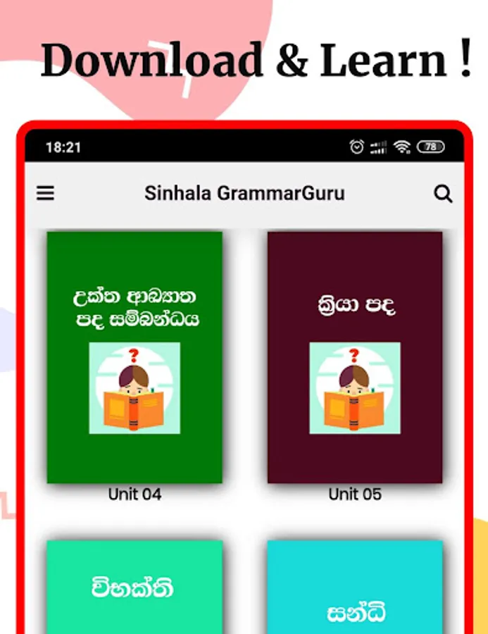 සිංහල ව්යාකරණ පාඩම් පහසුවෙන් ඉගෙන ගන්න App එක හා සම්බන්ධ වන්න.