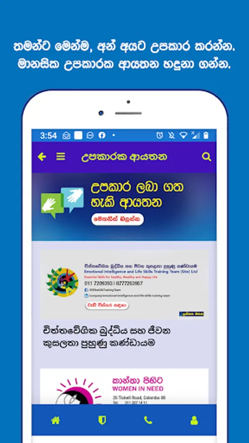* අපට උපකාර ලබා ගත හැකි අප අවට තිබෙන මානසික උපකාරක සේවාවන් පහසුවෙන් සොයා ගන්න.