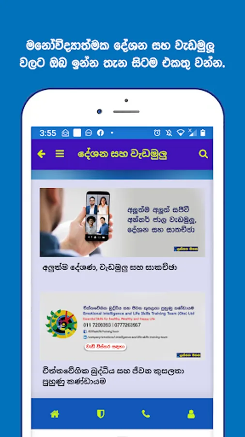 * ඕනෑම තැනක සිට පහසුවෙන් සම්බන්ධ විය හැකි මනෝවිද්යාත්මක දේශණ, සාකච්ඡා සහ වැඩ මුළු.