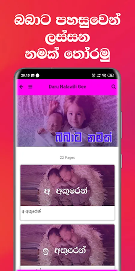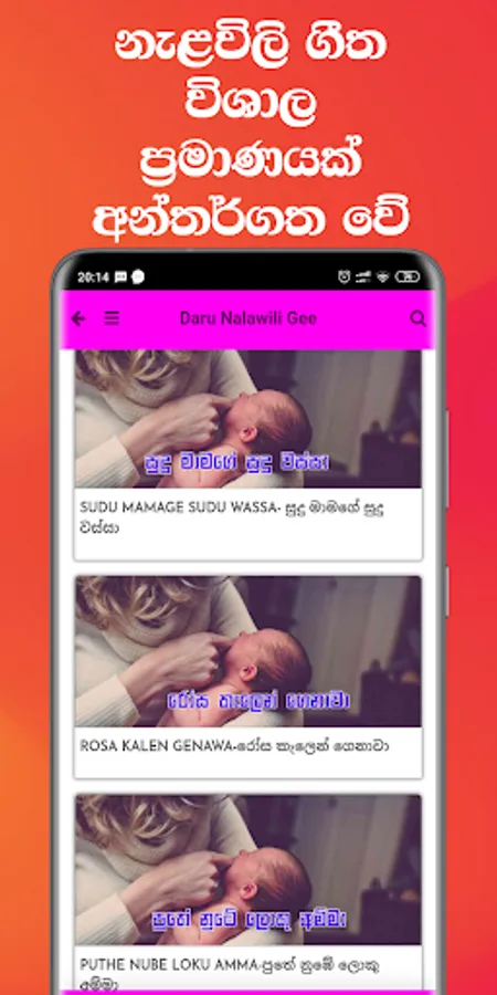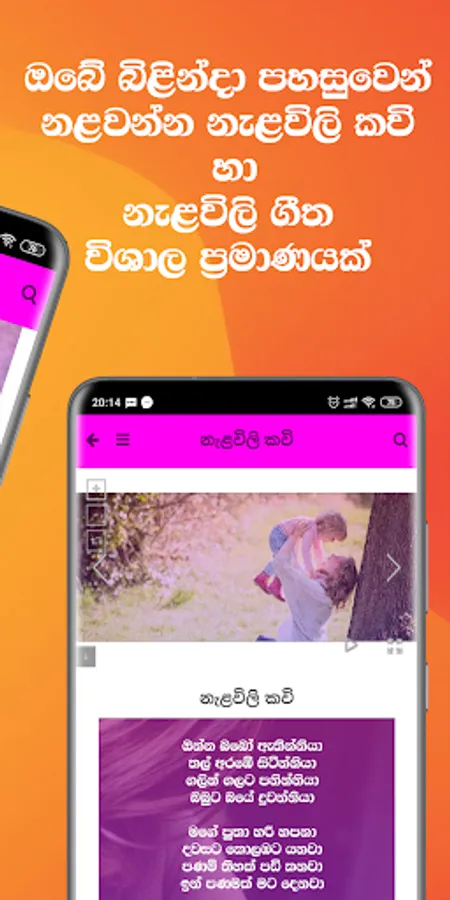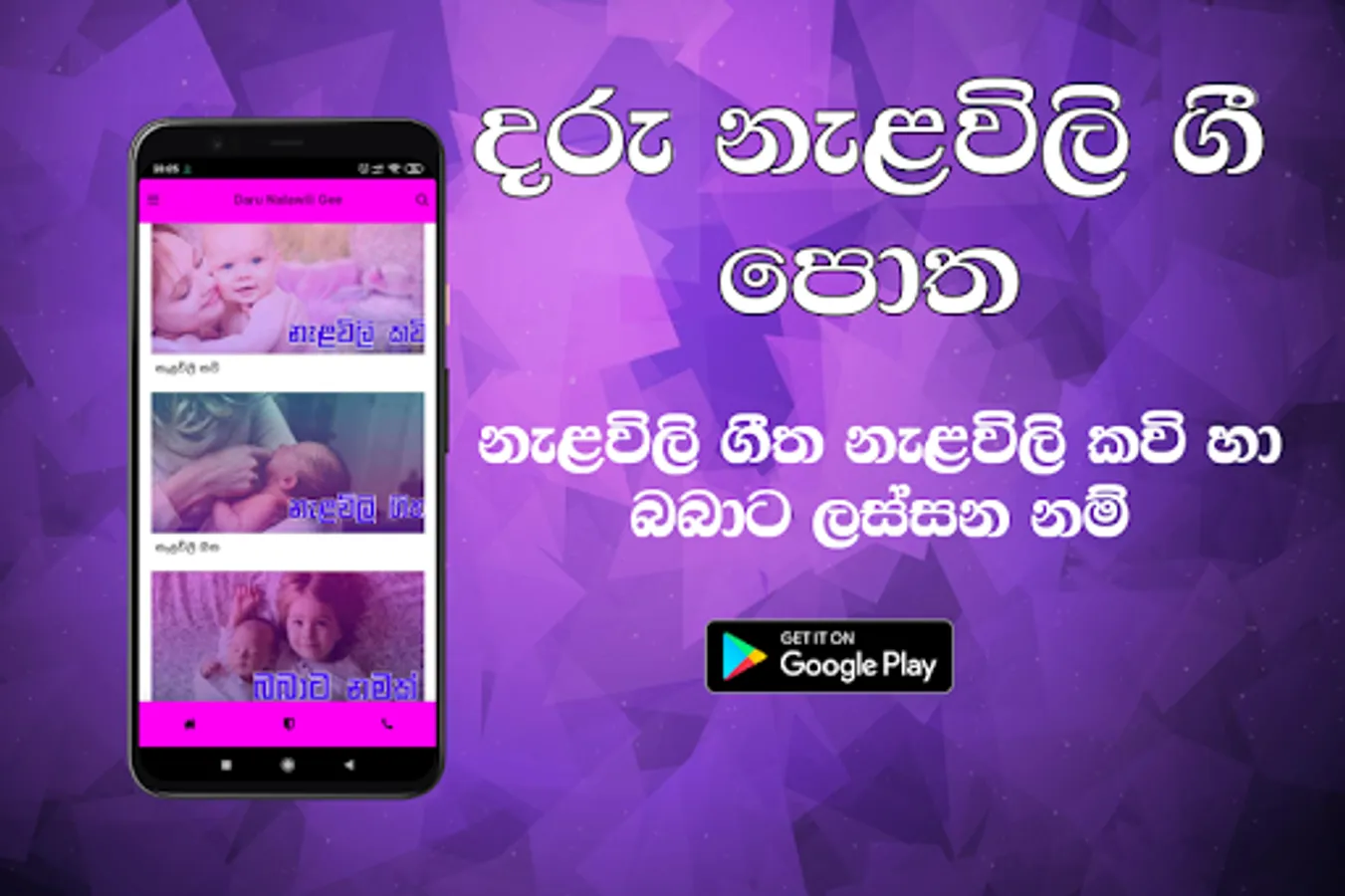 ඔබගේ ආදරණිය කුඩා බිළින්දා වෙනුවෙන් අපි සැකසු මෙම ඇප් එක ඔබ හට ඉතා ප්රයෝජනවත් වනු ඇතැයි අප සිතමු .මෙහි නැළවිලි කවි හා නැළවිලි ගීත විශාල ප්රමාණයක් අන්තර්ගත කොට ඇත.එමෙන්ම කුඩා බිළිඳුන්ට තැබිය හැකි සුදුසු නම් ද අප විසින් මෙහි අන්තර්ගත කොට තිබේ. බිළිඳා නළවන විට මෙහි ඇති ගීත /කවි ඔහුට හෝ ඇයට අසන්නට සලස්වන්න.නැතිනම් ඔබ විසින් ගීත පාඩම් කර ගෙන බිළිදා නලවන්න.