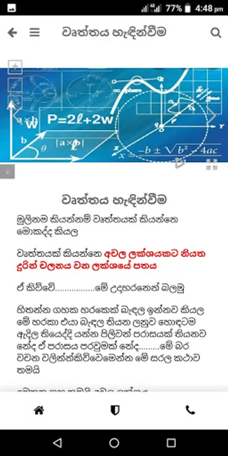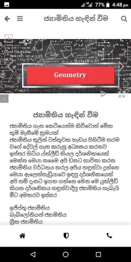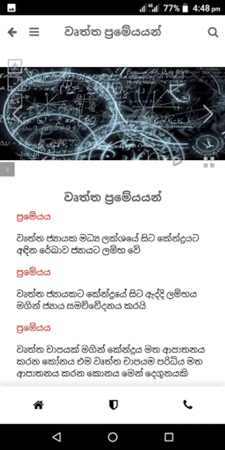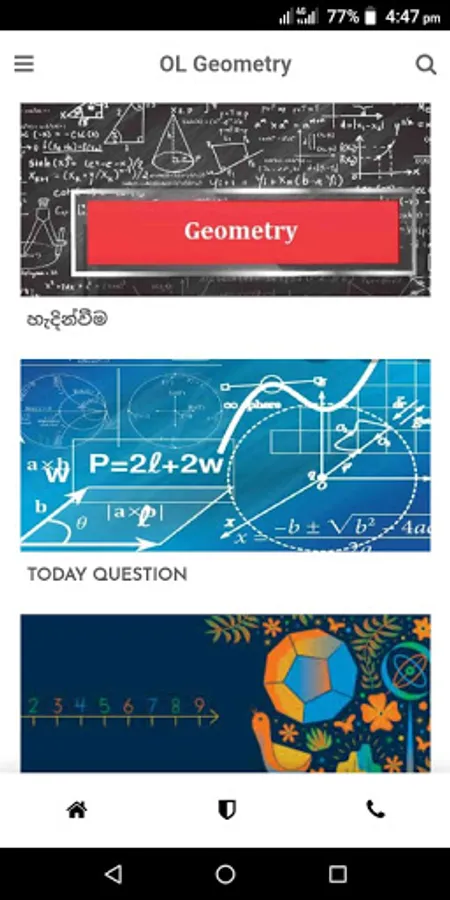 The idea was to create this to pass the geometry unit of the Ordinary Level Mathematics subject and to develop the creative ability of the students. This presents you with all the geometry theorems and proves them under the Theorem Proof section. It also gives you a math problem every day and the answer to that problem will be brought to you the next day.