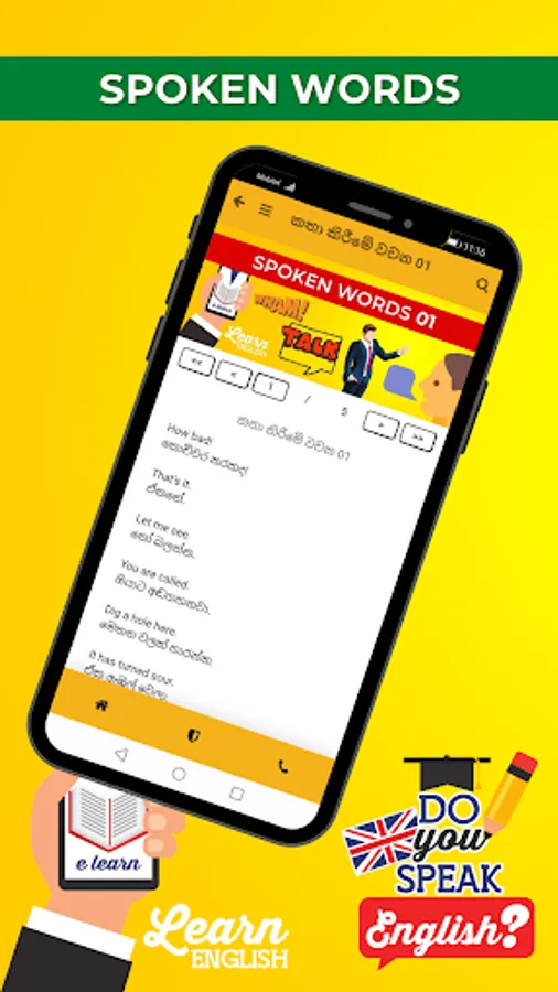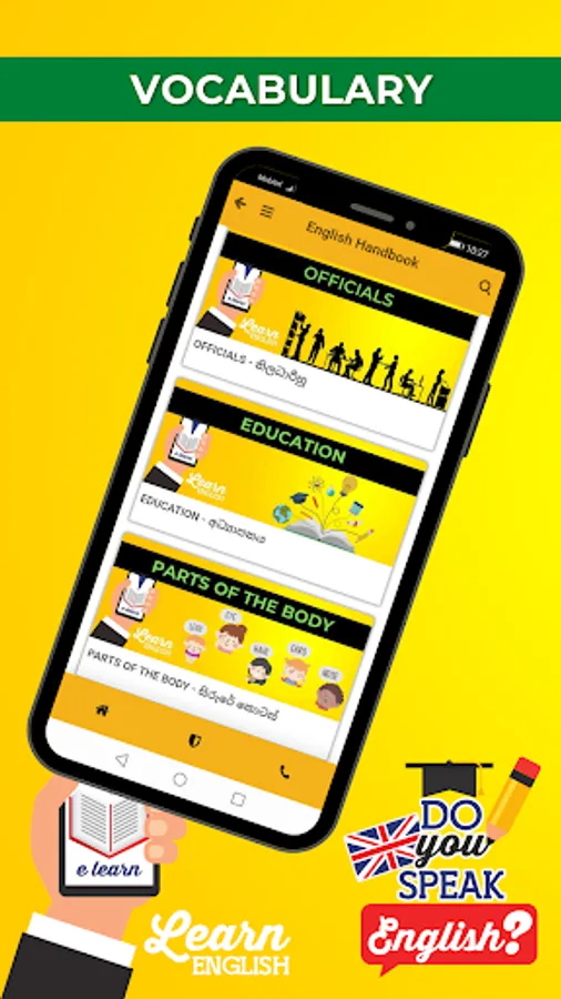 මෙම යෙදුම ඉංග්රීසි ඉගෙන ගැනීමට අපේක්ෂා කරන ඕනෑම කෙනෙකුට අත්පොතක් ලෙස භාවිතා කිරීමට හැකිවන පරිදි නිර්මාණය කර ඇත. ඔබට ඉංග්රීසි කතා කිරීමට ඉගෙන ගැනීමට අවශ්ය වචන, වාක්ය සහ සියලුම මූලික කරුණු මෙහි ඉතා පහසුවෙන් තේරුම් ගැනීමට පහසු ලෙස ඇතුළත් කොට ඇත.
