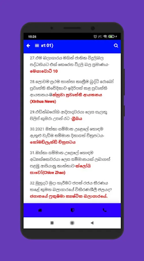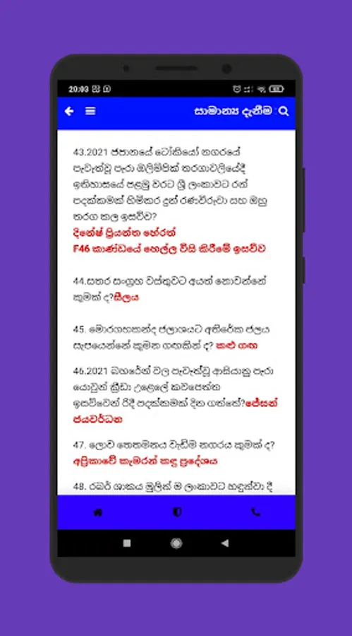 මෙහි ඔයාලට වටිනා සාමාන්ය දැනීම(samanya danuma) ප්රශ්න හා පිළිතුරු විශාල ප්රමාණයක් අන්තර්ගත වෙනවා.ඒවගේම අපි දිනපතා සතිපතා ඔබට අලුත් ප්රශ්න app එකට ඇතුලත් කරනවා .ඒ වගේම අලුත්වන ලෝකයේ සියලු තොරතුරු ,කාලීන දැනුම හා ඒ ආශ්රිත ප්රශ්න මෙහි අන්තර්ගත කරනවා.මෙය ඔයාලට එදිනෙද ජිවිතයට වගේම රජය මගින් පවත්වන නොයෙකුත් තරග විභාග වලටද (උසස් පෙළ පොදු පරීක්ෂණය/ගුරු විභාග/බැංකු විභාග/ පරිපාලන සේවා/ නීති විභාග වැනි බොහෝ තරග විභාග සදහා )ප්රයෝජනවත් වනු නොඅනුමානයි.ඒ වගේම මෙහි දහම් දැනුමද අන්තර්ගත වෙනවා.ඉතින් ධර්මාචාර්ය,දහම් පාසල් අවසාන විභාග කරන අයටද මෙය ඉතා වැදගත් වෙනවා.තව බොහෝ දේ ඉදිරියට අපි ඇතුලත් කරනවා .