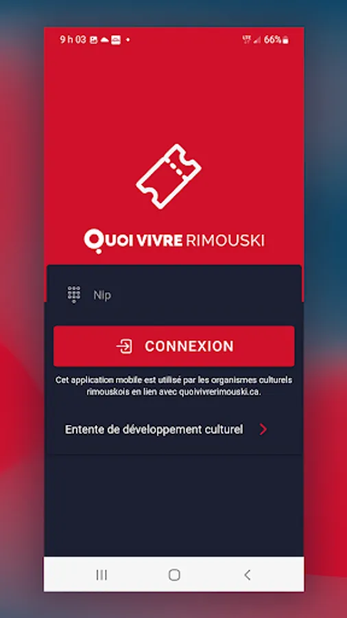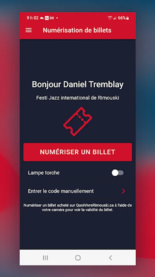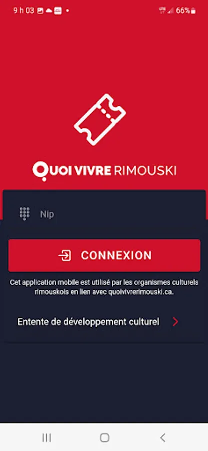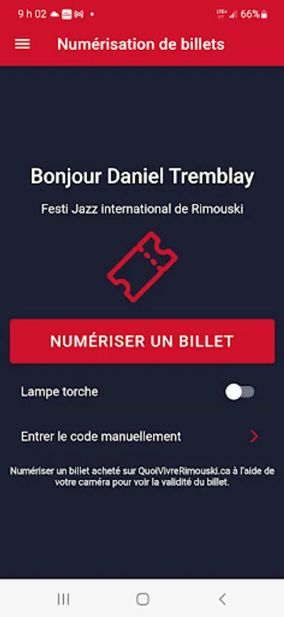 Application for scanning tickets for cultural organizations in Rimouski using the quoivivrerimouski.ca ticket office.