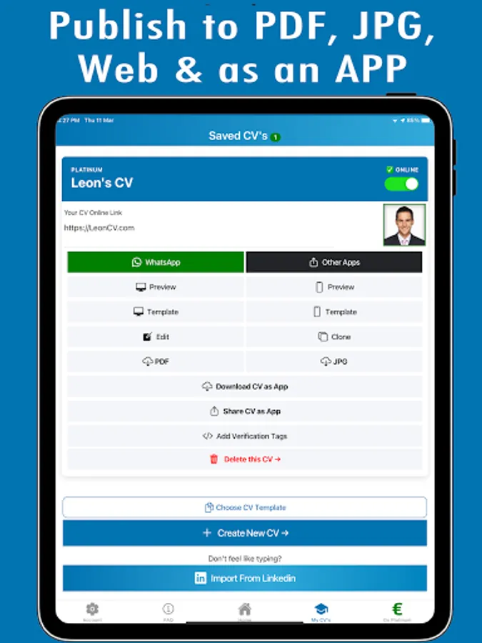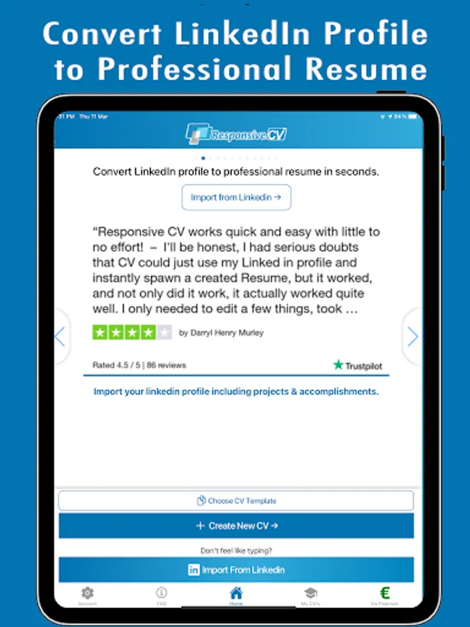 Make a resume instantly with your LinkedIn profile, download as PDF, JPG & Doc.