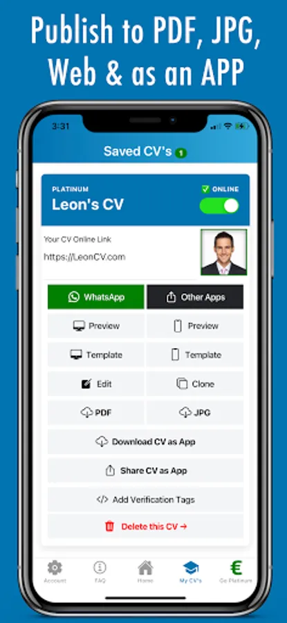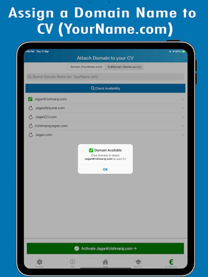 Attach a domain name with an SSL certificate to your online CV.