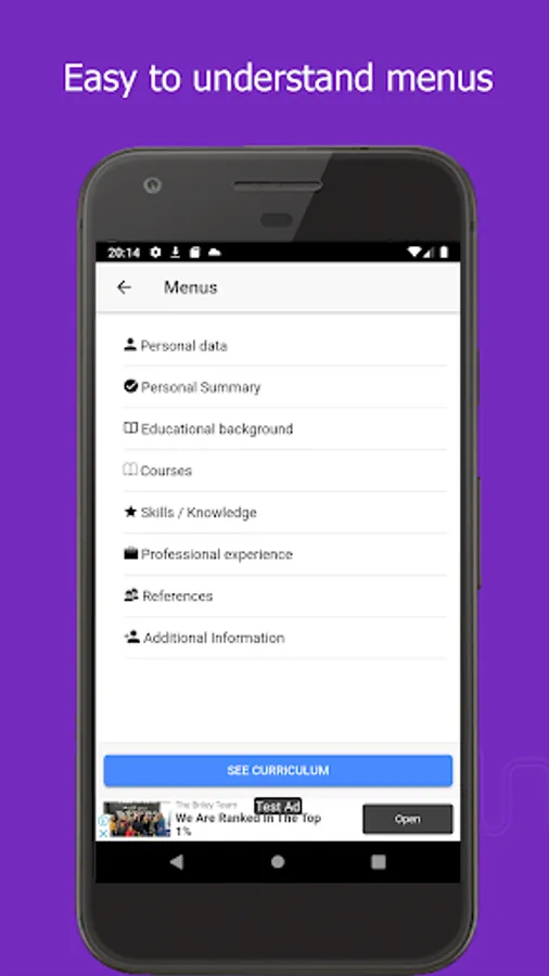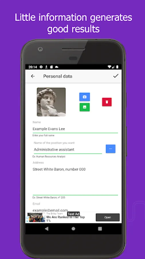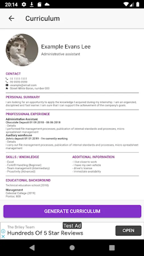The Resume application has several features and suggestions, some examples are curriculum for apprentice and administrative assistant.