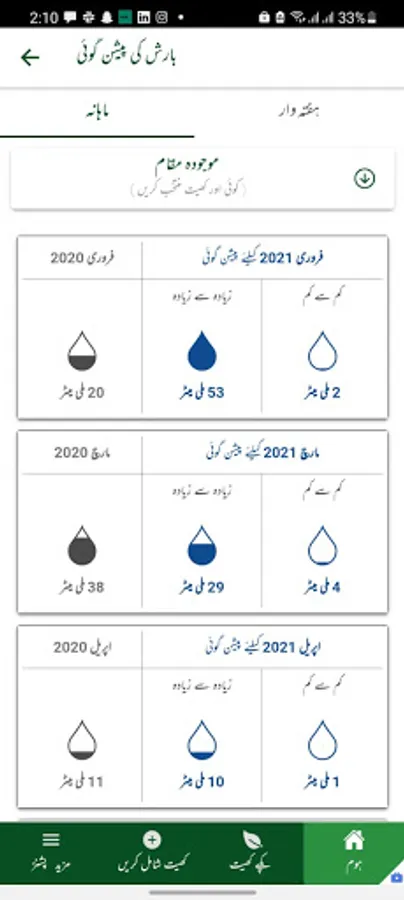 اپنے کھیت پر بارش کی مقدار اور بارش کی پیشن گوئی دیکھیں-