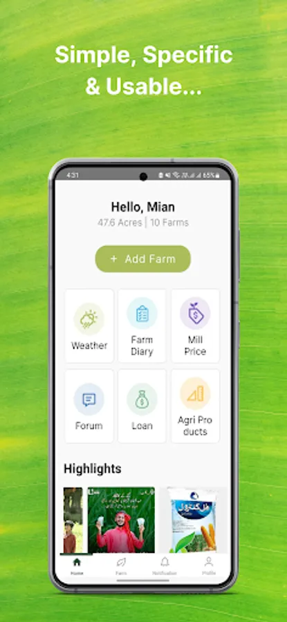• Record your farm's data such as sowing date/harvest date/yield/crop type etc.