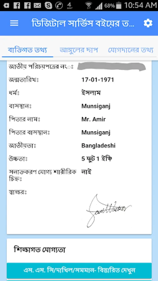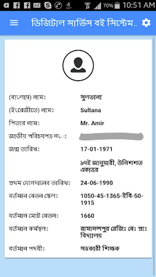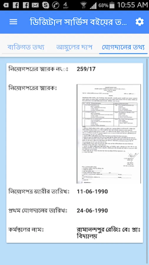 <> সার্ভিস বই খোলার শুরু থেকে বর্তমান সময় পর্যন্ত সকল তথ্য দেখা যাবে।