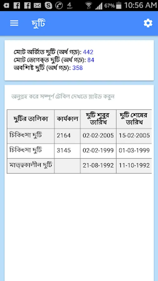 <> সহজেই ছুটির হিসাব নির্ধারণ ও দেখা।