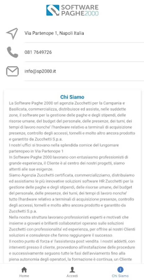 The Software Paghe 2000 srl Zucchetti agency for Campania and Basilicata, markets, distributes and assists, in the aforementioned areas, the software for the management of wages and salaries, human resources, staff budget, attendance, shifts, working times as well as the hardware related to time and attendance terminals, access control, turnstiles and much more produced and guaranteed by Zucchetti Spa