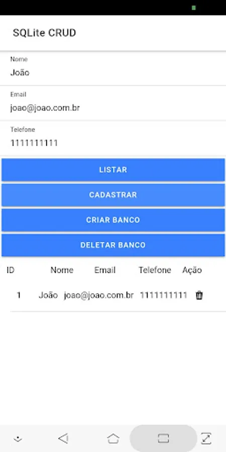 CRUD SQLITE Screenshots