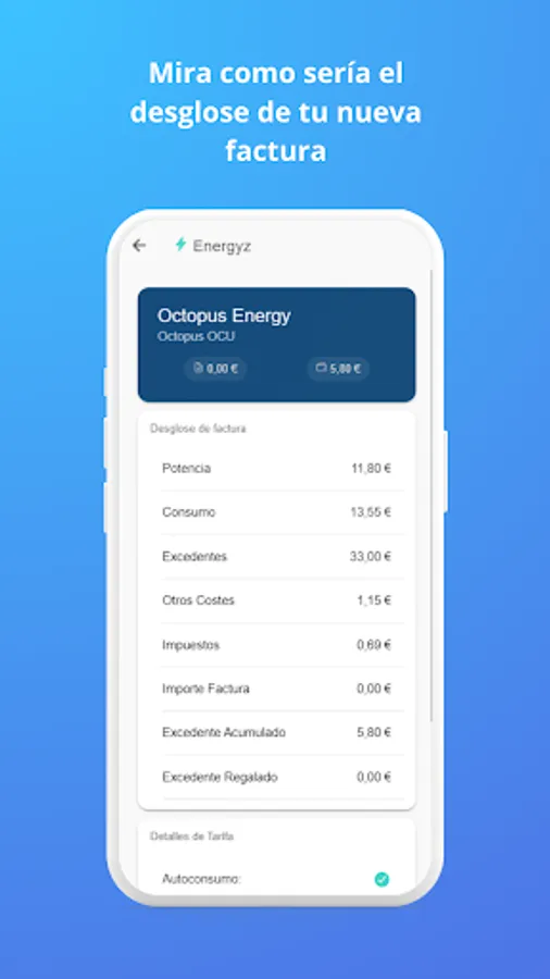 Enter the power, consumption and surplus data of your electricity bill and obtain the best rates that adapt to your consumption.
