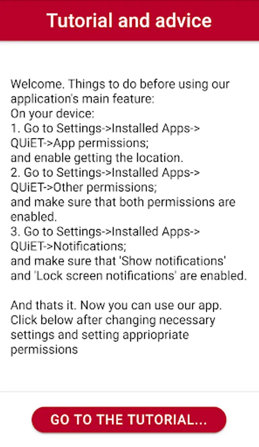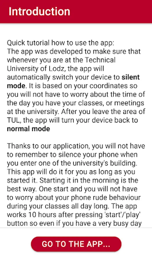 The application automatically silences your mobile device when you are in the area of TUL