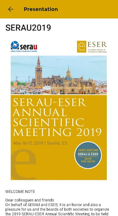 On behalf of SERAU and ESER, it is an honor and also a pleasure for us and the boards of both societies to organize the 2019 SERAU-ESER Annual Scientific Meeting, to be held for the first time in Seville on the 16th and 17th of May , 2019.